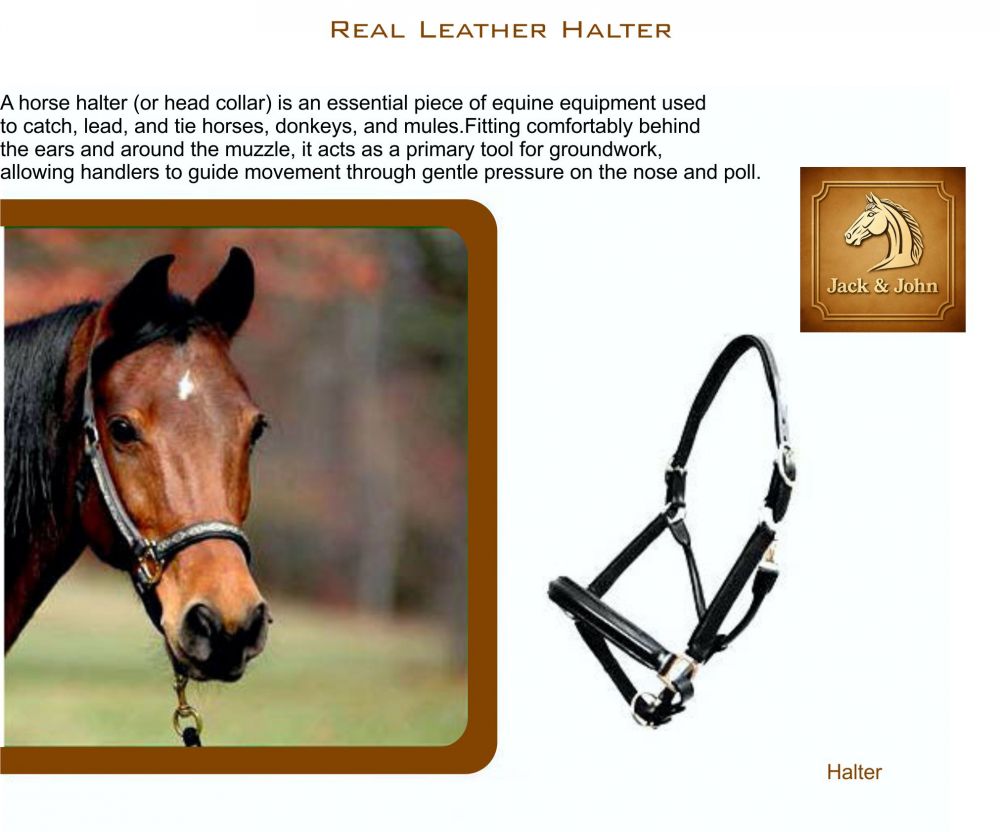 A horse halter (or headcollar) is an essential piece of equine equipment used to catch, lead, and tie horses, donkeys, and mules. Fitting comfortably behind the ears and around the muzzle, it acts as a primary tool for groundwork, allowing handlers to guide movement through gentle pressure on the nose and poll.